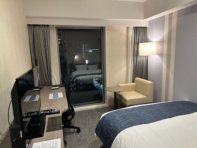 部屋もビジネスホテルにしては広めで、デスクも広々。