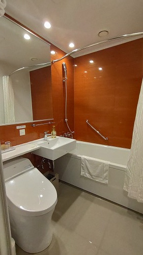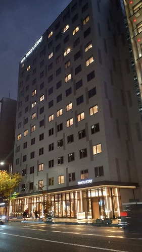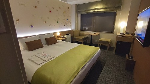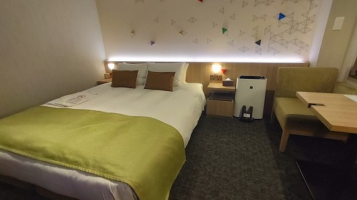 武蔵が辻と香林坊の中間地点に立つ滞在型ホテル。実際は観光客、インバウンドの利用が多い印象です。部屋はダブルベッドのある1人には十分すぎる広さで、室内に電子レンジ、洗濯機がしっかり設置され長期滞在にも対応しています。バスタブも広く快適。