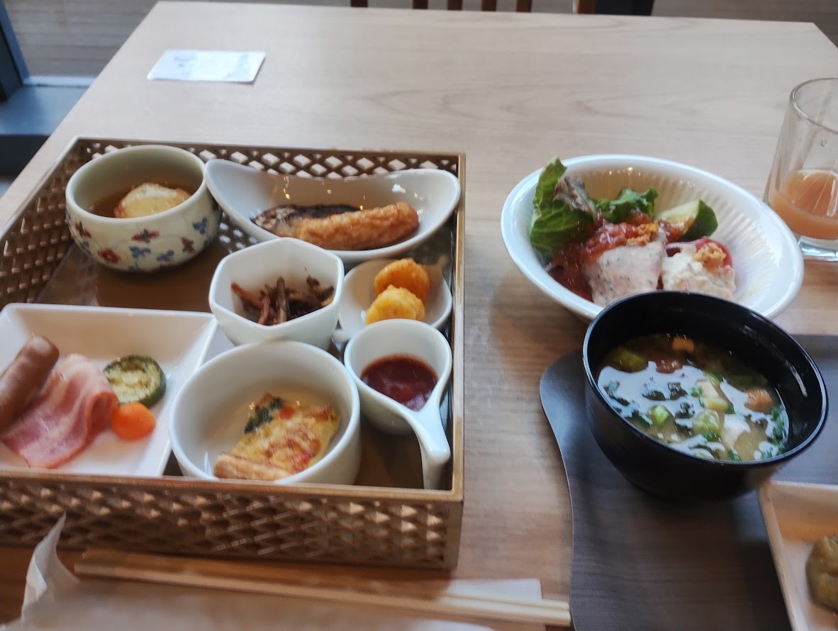 天神から近い薬院にある公共系のホテルです。会合、宴会、婚礼にも使用できるシティホテル型なので、ロビーは広く、レストランが充実していて、ビジネスホテルよりグレードが高いです。近年、博多のビジネスホテルの料金が上がっているので、相対的にコスパよく感じられます。部屋は、ゆったりていて快適です。朝食付きプランにしましたが、品数豊富な和洋ハーフバイキングで充実していました。
