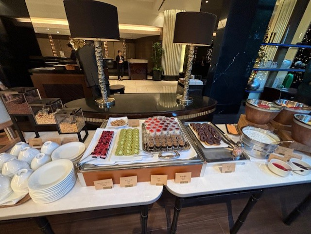 ビュッフェ形式で和洋色々あり、迷ってしまうほど。ライブキッチンでは、鯛の丼を提供していました。