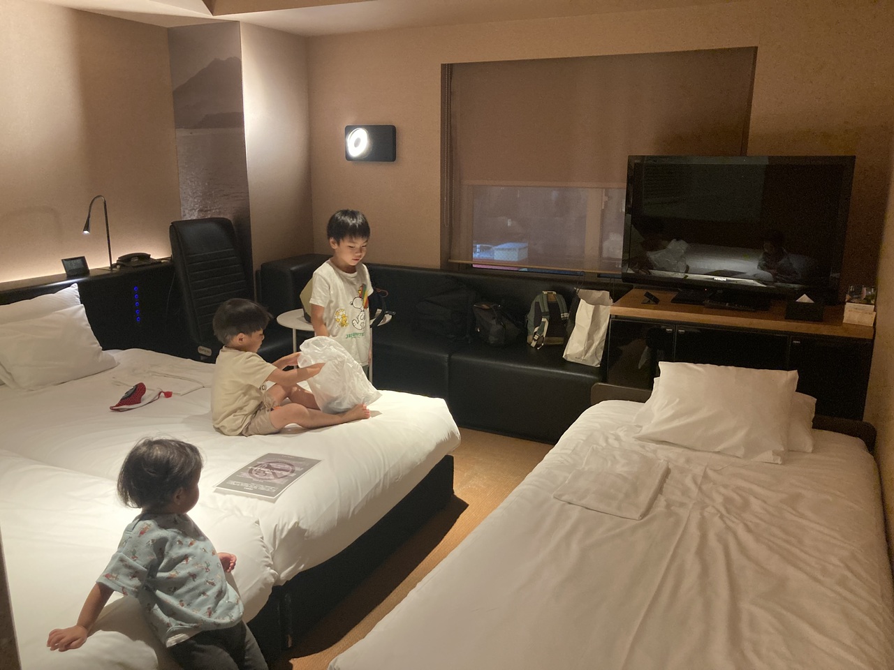 20時近くに鹿児島に到着し、空港の周りにホテルもなく、まだ子供が小さいので歩かせるのも大変だなと思っていました。