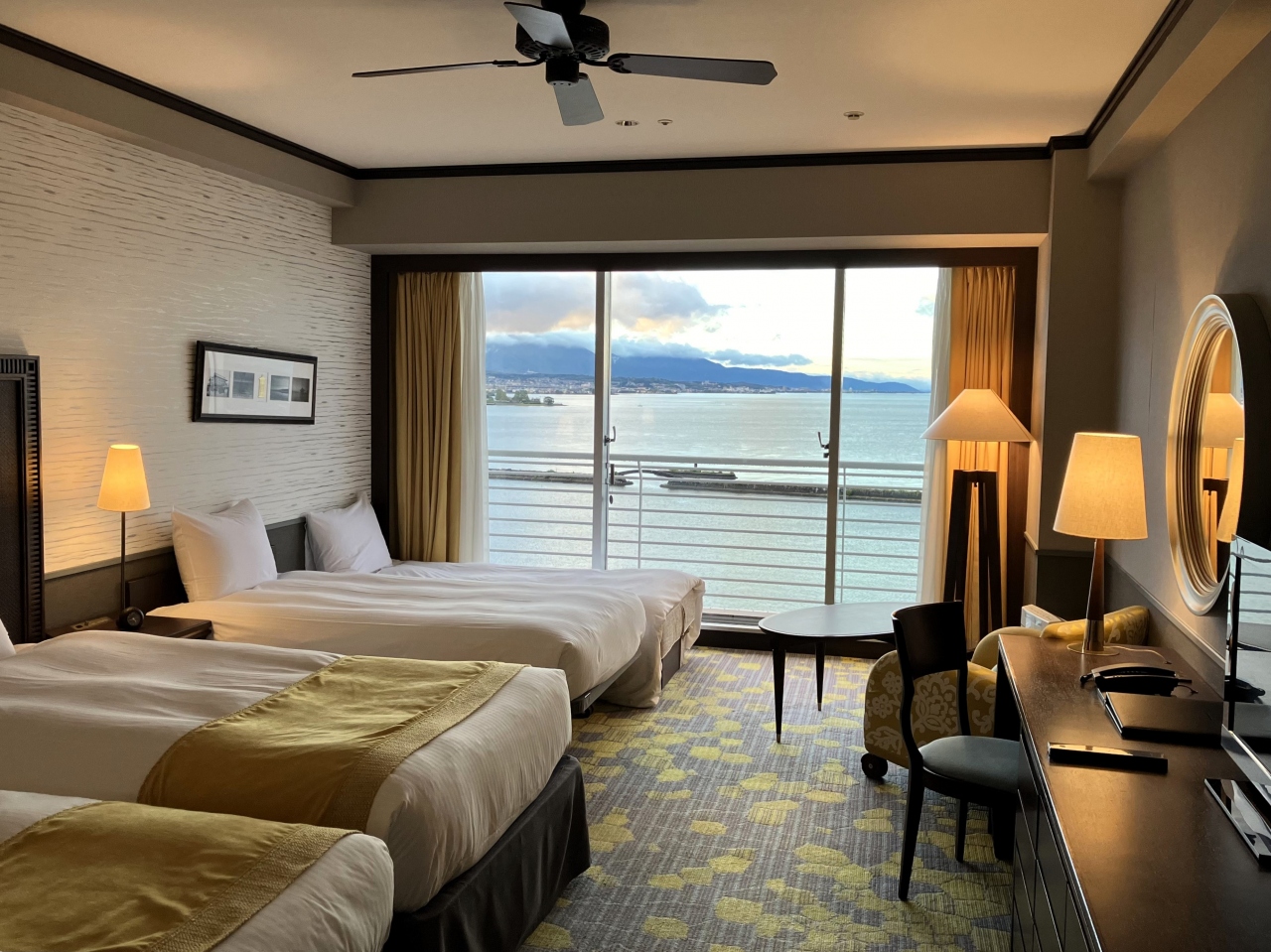部屋はレイクビューで、テラスがあり全面窓で眺望がいいです。