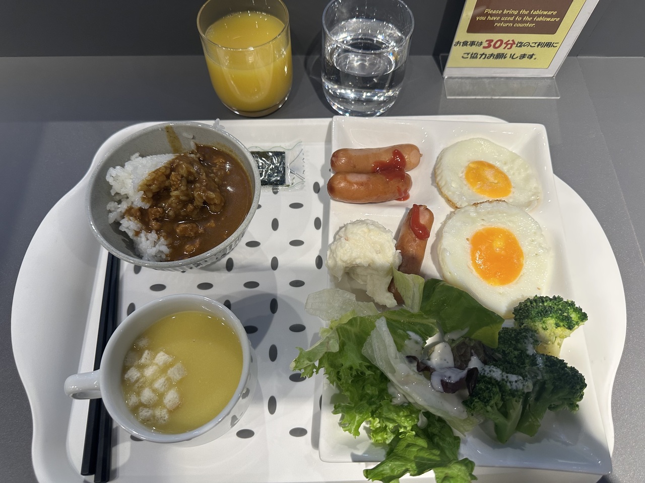 今どきの大阪は、1泊1万円以上が常識の中で、8000円で朝食付は、リーズナブルと言えるでしょうね。その朝食は、無料なのでシンプルでした。味噌汁が欲しかった^_^