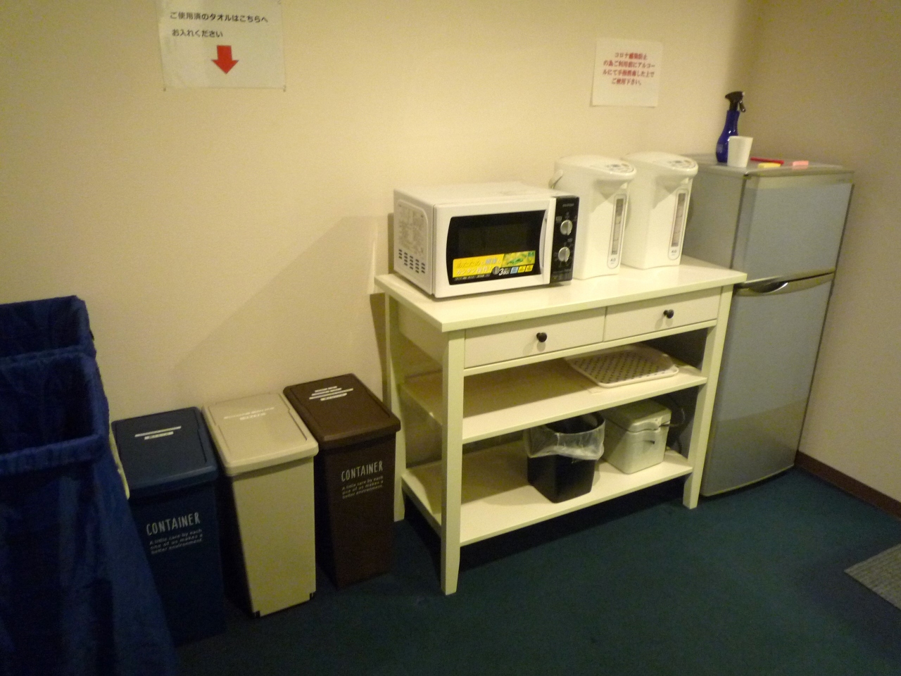オープン廊下を経て一区画がキャビンルームに13室から成り、共用スペースとして洗面台・シャワールーム3室・トイレ(小・大2)、ランドリー室(洗濯機乾燥機は無料)・電子レンジ・給湯ポット台から成ります。