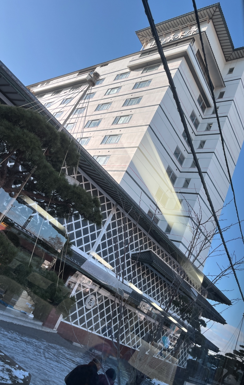 阪急交通社と野口観光のコラボツアーで1泊しました。湯の川にあり、道路向かいにはドラッグストア、隣にローソンがあります。温泉のついた大きな旅館です。露天もあり、いつでも入れます。高校の修学旅行生も宿泊していました。食事は夕食も朝食もブッフェ。北海道の名産品があれこもれも出て、美味しかったです。