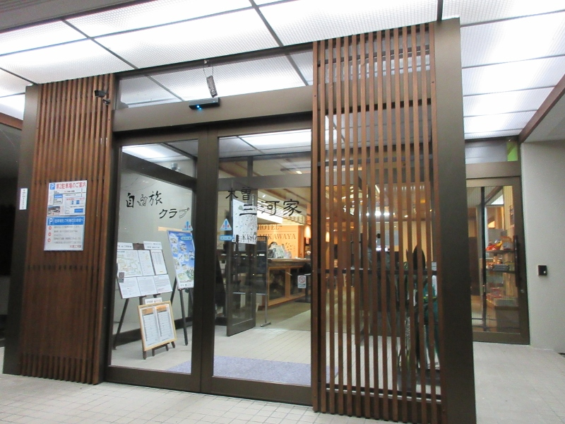 木曽路を歩くので利用しました。奈良井宿から歩いていましたが、暗くなる前にたどり着けないようだったので、原野駅から木曾福島駅まで電車で行き、木曾福島から戻りました。木曽福島駅から20分程歩いた時は遠く感じましたが、翌朝見ると木曽川に沿った宿で雰囲気は良かったです。経営が代わったようでソフト面はビジネスホテルみたいでしたが、大浴場もあり、ソフトドリンク飲み放題なのが良かったです。