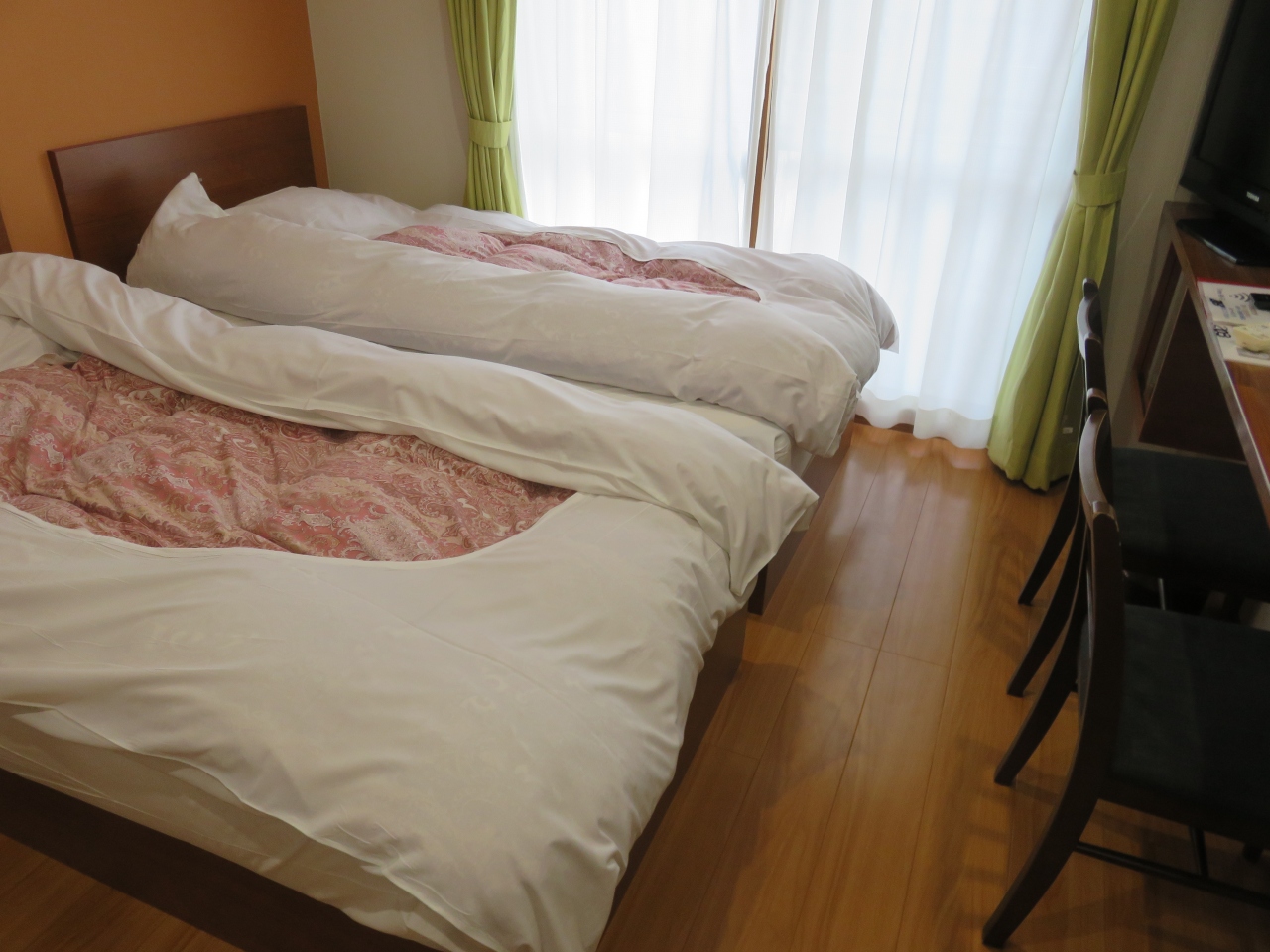 部屋はツインのシングルユース。ちょっと狭いけどトイレがきれいでした。