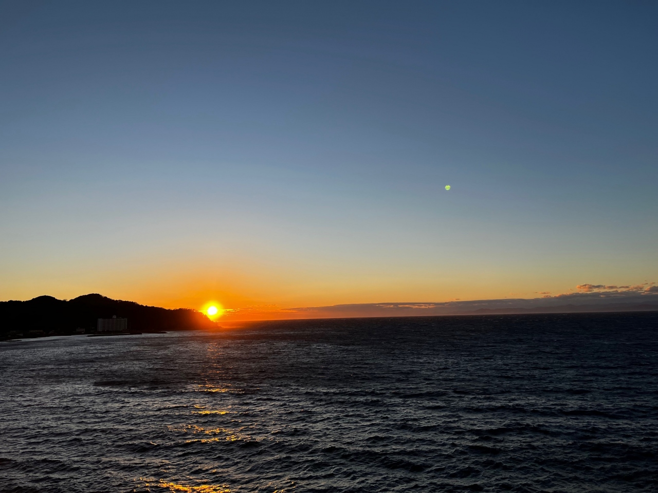 部屋はおそらく全部屋海に面しており、夕日が最高です。