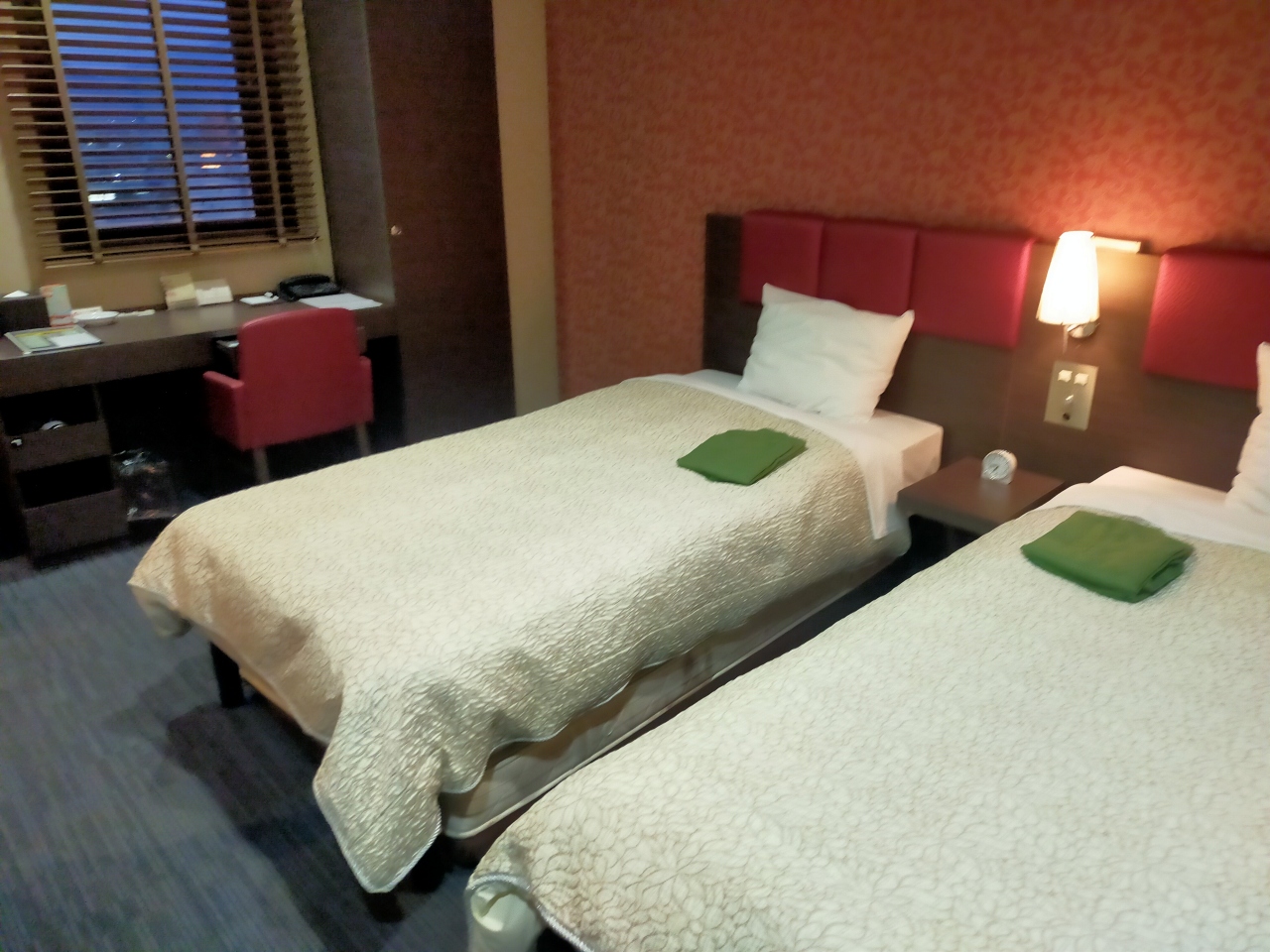 部屋はまあまあの広さです。枕元にコンセントもあります。