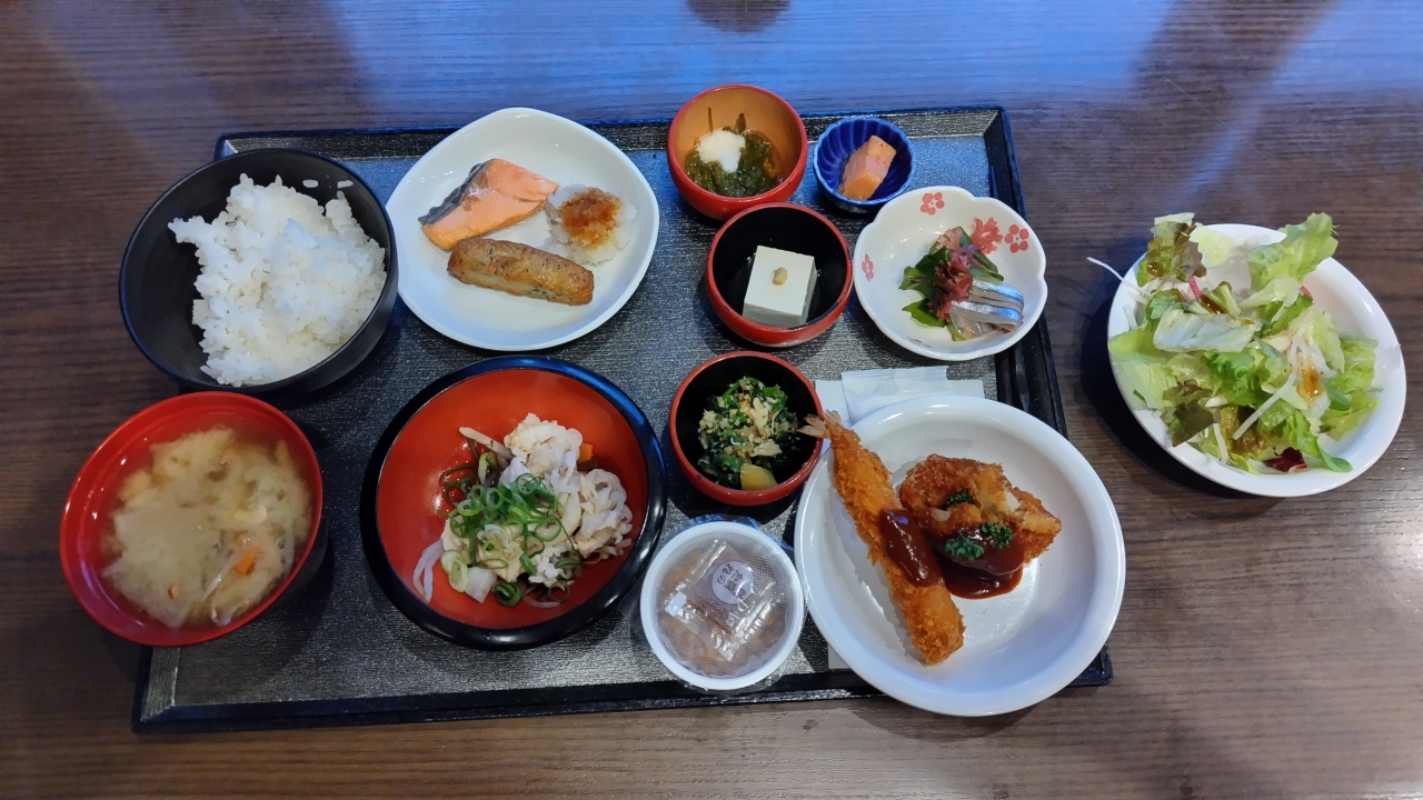 朝食は鹿児島名物が並び、鹿児島豚のしゃぶしゃぶや豚汁、きびなご、さつま揚げなどが楽しめます。
