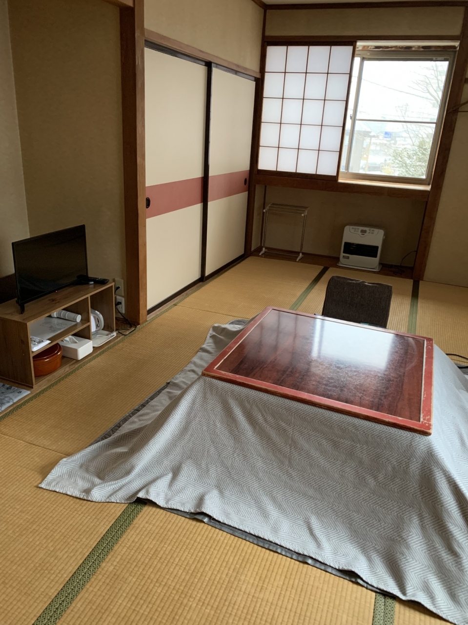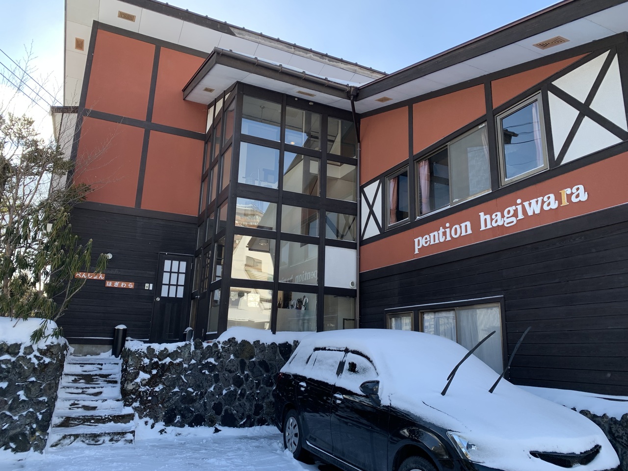 昔懐かし昭和のペンションです。畳とこたつと石油ストーブの匂い。ゆっくり出来そう。お茶とお菓子で一休みしたら、お布団敷いちゃいましょう。掛け流しの温泉は小さいけれど貸し切りで、男女どちらでも空いていれば入れます。二重窓を開ければ、冷蔵庫の代わりに。牛乳とデザート、サラダを冷やします。いいな、たまにこういう雰囲気も最高。スーパー、コンビニもあって、アクセスよく便利でした。