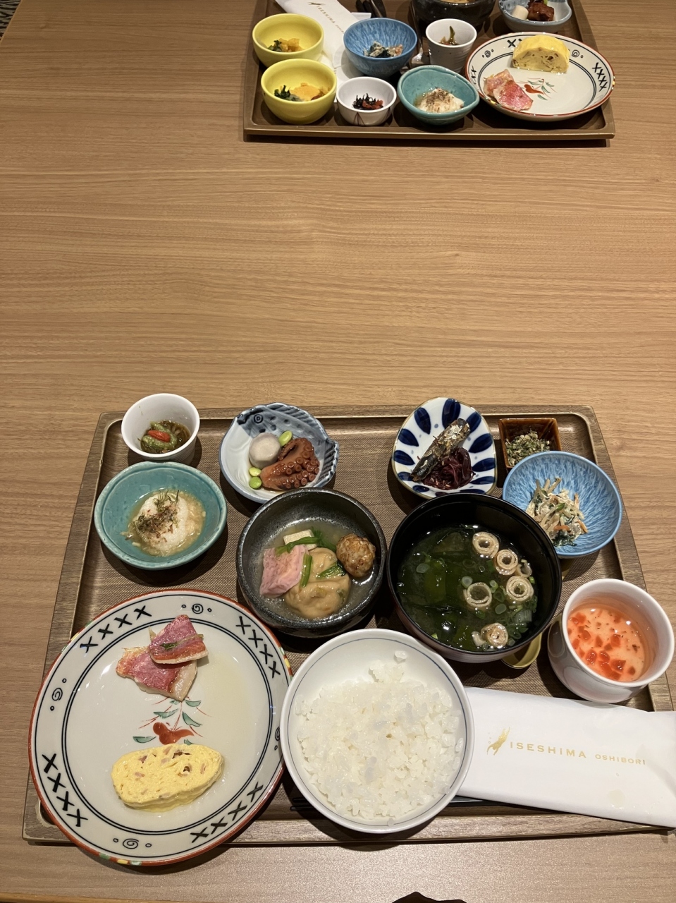 夕食は懐石、朝食もひと手間かけた数々の品。飽きません。