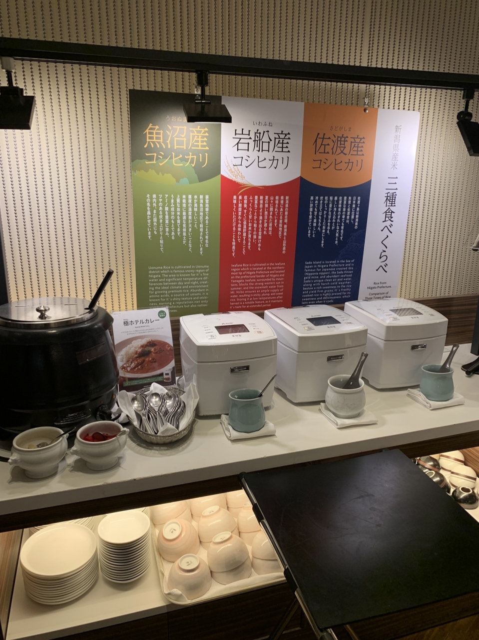 「ラブラ万代」・「万代シティバスセンター」が近くにあり、便利です。ロビーにベルデスクがありチェックイン前に伺ったところすぐにお声がけされて荷物を預けることができました。バスタブは、とても綺麗でひろびろしてます。朝食ブッフェは種類も多く、他方クチコミ通りおすすめです。新潟は米どころと言われるだけあり新潟三種のお米、「魚沼産コシヒカリ」、「佐渡産コシヒカリ」、「岩船産コシヒカリ」食べ比べができます。もちろん出来立てオムレツもありました。ヨーグルトも種類がありました。朝食は美味しかったです。1Fにジムもあり、カードキーで入ることができます。マシンはもちろんバランスボールもありました。気軽に使えてよかったですがまた利用したいです。