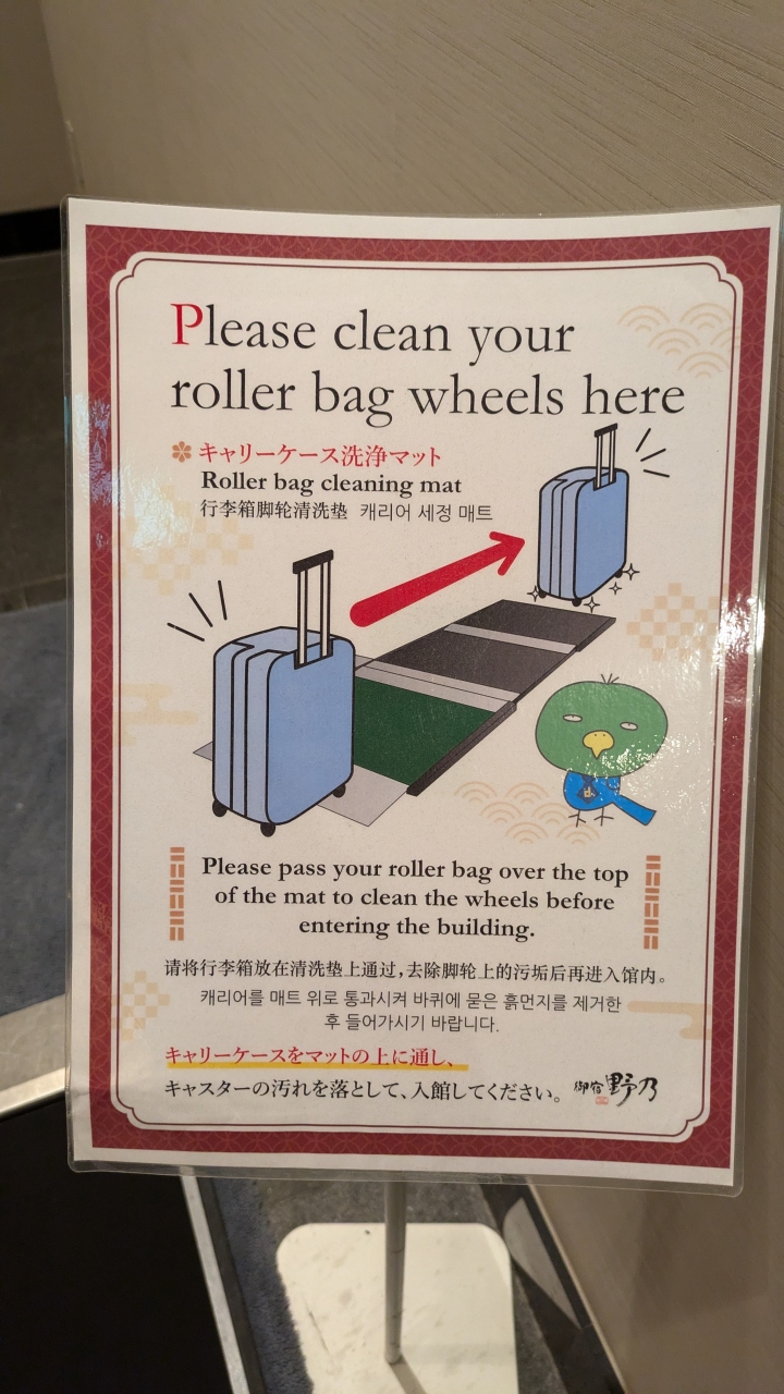 しかし、外国からのお客さんはホテルの感覚なのか、マットで車輪を綺麗にすることは理解していないお客が結構いました。