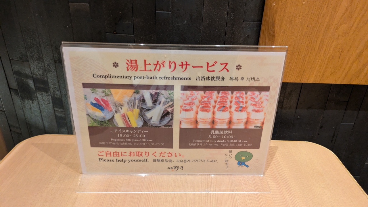 しかしお風呂上りにゆっくりできる休憩所がありません。