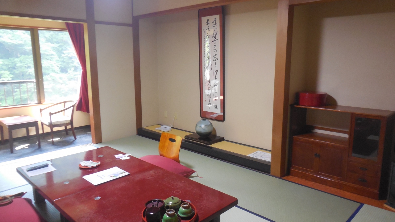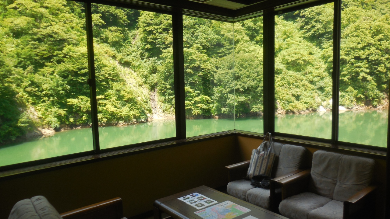 宿は、素朴な感じで、お部屋は緑美しい川側を選びました。露天風呂は野趣に溢れ、川を見ながら楽しめます。秘境感満載です。