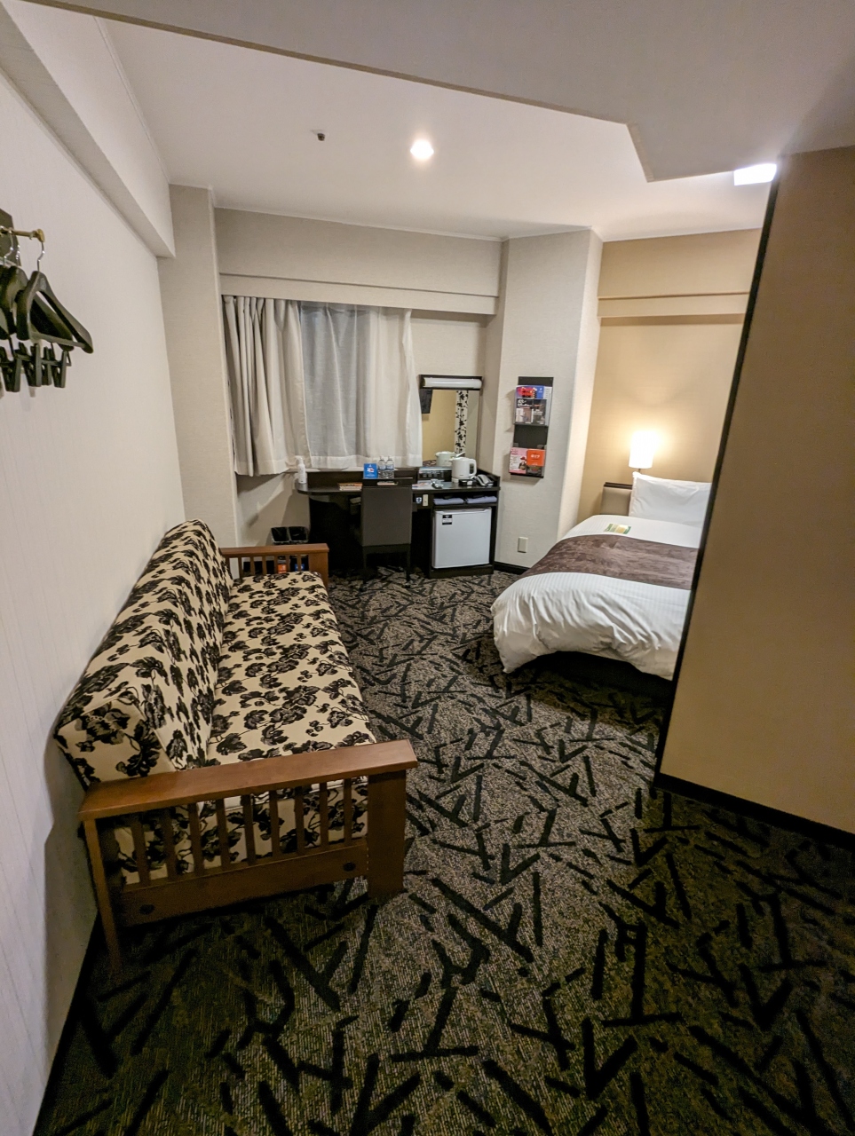 1日目のアパホテルとは異なり、ソファ付きだったのが非常に魅力的で、居心地は非常に良かったです。1泊なのが非常にもったいないくらいの感じでした。