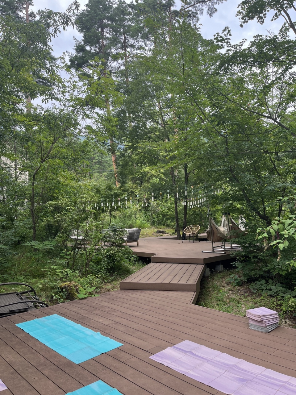 体験プログラムも充実していて、星見暖炉で過ごす焚火BARと早朝ヨガに参加させて頂きました。