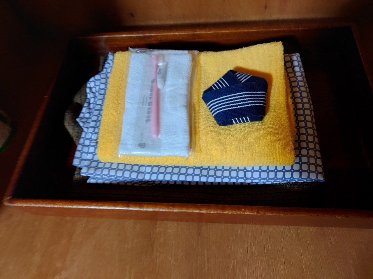 部屋に冷蔵庫やドライヤーも完備。浴衣や歯ブラシもありました。