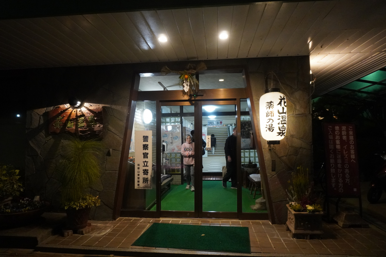 花山温泉は、和歌山市内では圧倒的な人気の日帰り温泉。少し遠いですが、日前宮駅から歩いて訪ねました。