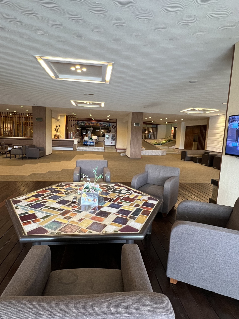 ロビーも廊下も食事会場も広くて全体的にゆとりのある空間で寛げました。夕食にはサザエなんかもあってよかったです。大江戸温泉の直行バスでいきましたが、チェックイン前に着くので、チェックイン手続きはできますが、鍵をもらえるのは3時になってから。でもそれまではロビーでフリードリンクバーがあるので、ドリンクを飲みながら待てます。平日だったせいか部屋もグレードアップしてもらって