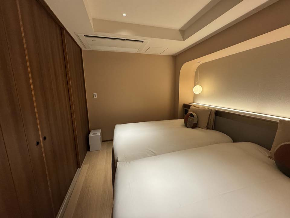 ですが程よい広さでソファーに腰掛け、大型テレビでネット動画含めて楽しめるリビングルームに、時間を問わずドアで完全に真っ暗にできる窓のないベッドルーム。