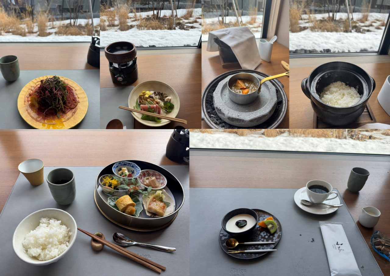 食事はプライバシーにも配慮されたレストランで、ワインを嗜みながらゆっくりと。夕食の内容は長野の食材を使ったフレンチ料理、朝食は土鍋炊きのごはんメインの和食。