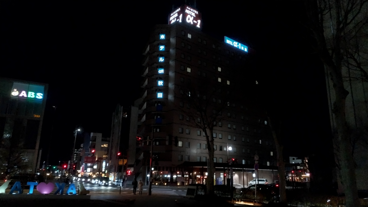 秋田駅前にあり、駅からすぐの場所でわかりやすい。一般的なビジネスホテルで、特に問題なく泊まれた。1階には居酒屋があり、フロント前から直結している。朝食はその居酒屋内で、バイキングスタイルで食べられる。やはり、あきたこまちのご飯がおいしく、どちらかと言えば、おかず類も和食テイストである。コンビニも徒歩数分の場所にあり、便利である。