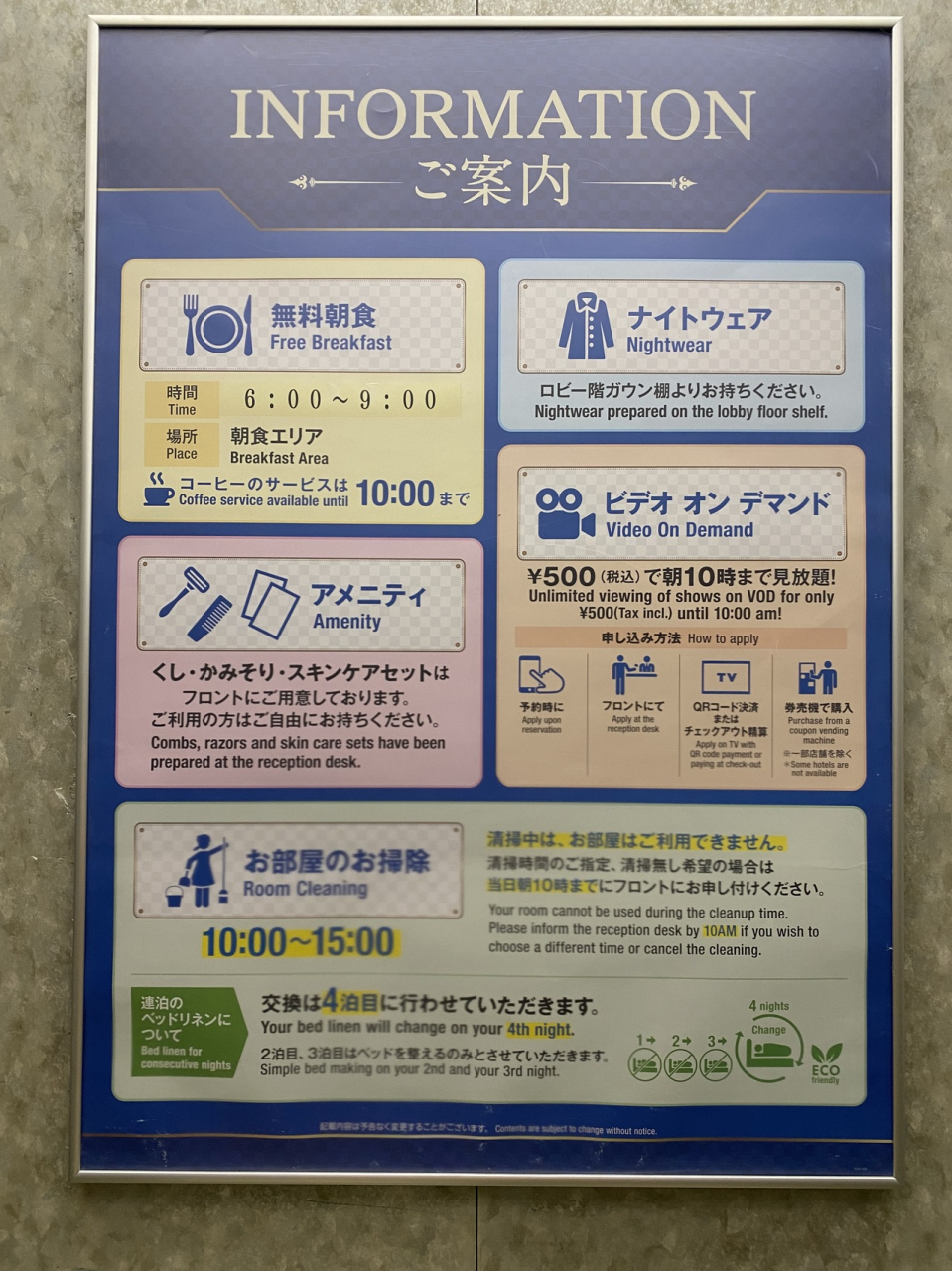 ナイトガウンやアメニティー類はフロント近くのコーナーから選んで取って。