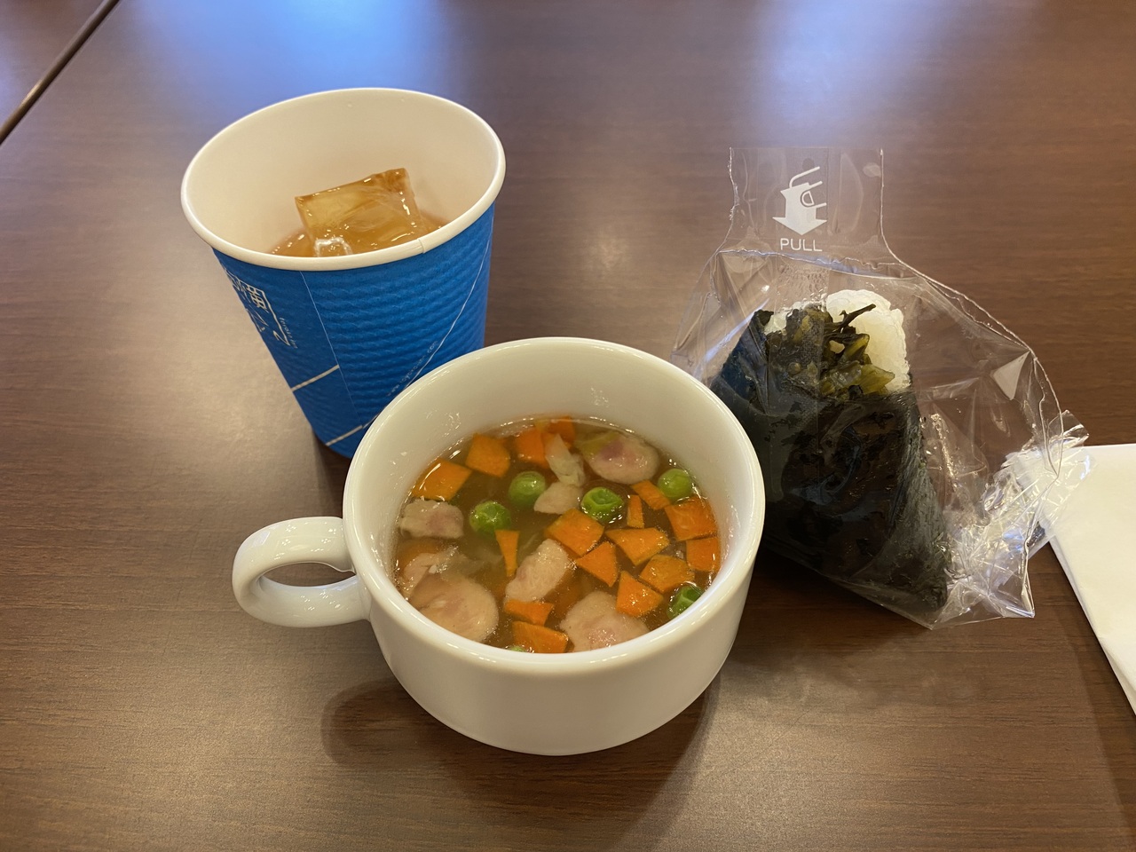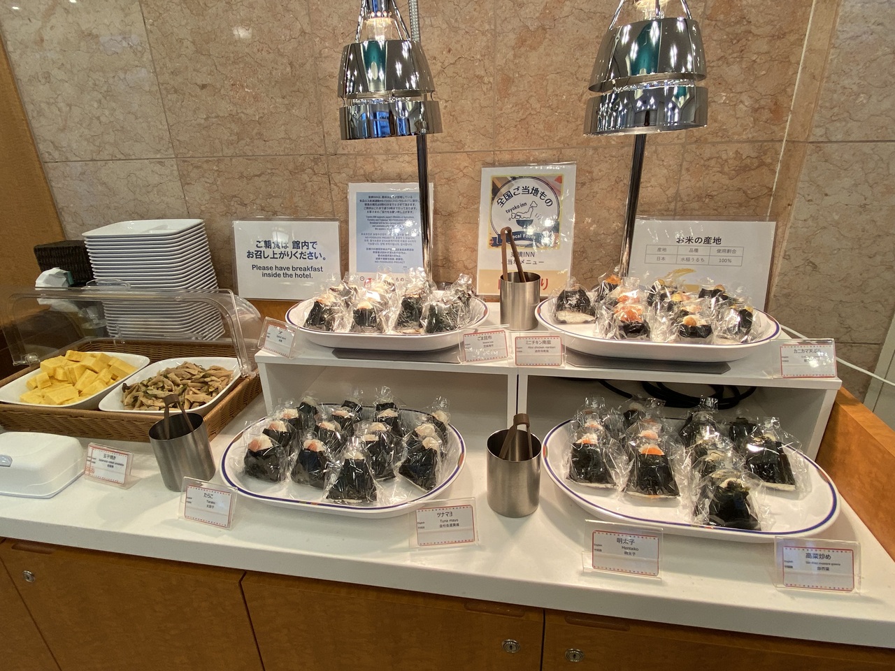 朝食、AM6時〜9時、おにぎりとポトフが美味しかった。
