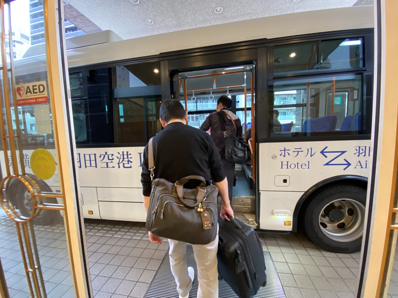 羽田空港への無料送迎バスは「1」のエントランスから発着