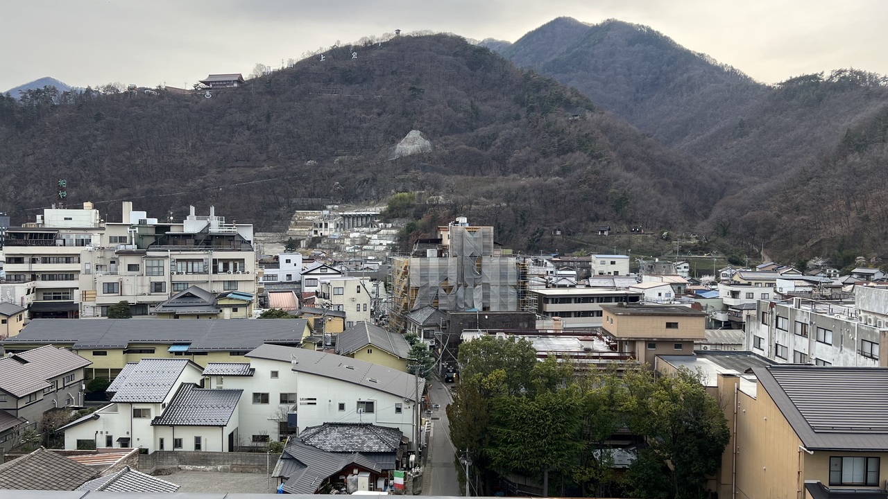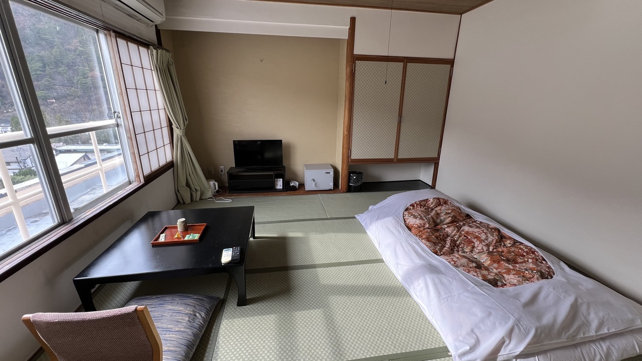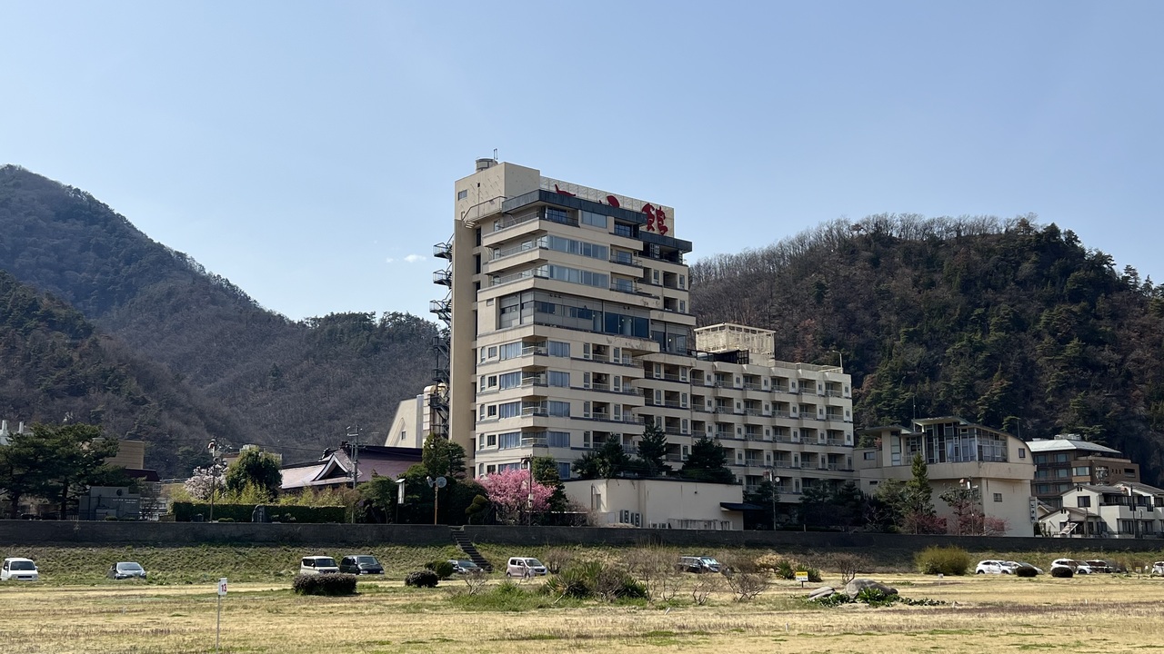 千曲川の土手にあり、とても長閑な風景を望める場所にあります。ほとんどの部屋は千曲川側にあり、とても眺望が良いと思いました。今回は、山側、温泉街ビューの訳あり和室しか取れませんでした。眺望はそれほど悪くなかったのですが、機械の作動音がブーンブーンと絶え間なく聞こえていました。自分はそれでもしっかり寝られましたが、気になる人には辛いと思うので、リバーサイドの部屋を予約した方が良いと思います。