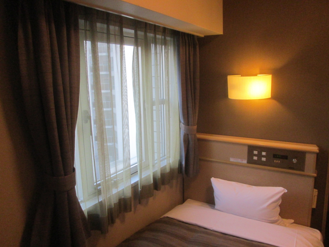 ホテルルートイン博多駅南の角部屋に通していただきました。朝、早めにホテルに到着してチェックインの手続きをしたからかもしれません。窓が2つあり、日当たりの良い客室でした。滞在中、暑く感じるときは窓を2つ開けると風通しが良く快適でした。