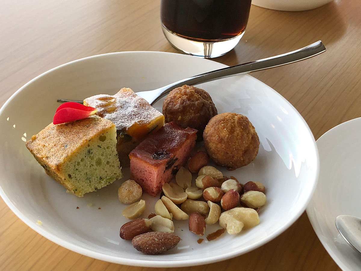 ラウンジは最上階の展望フロアなので、昼も夜も展望は良かったです。用意されていた飲み物、軽食類もまずまずで、軽めで良ければ夕食代わりにもなると思いました。