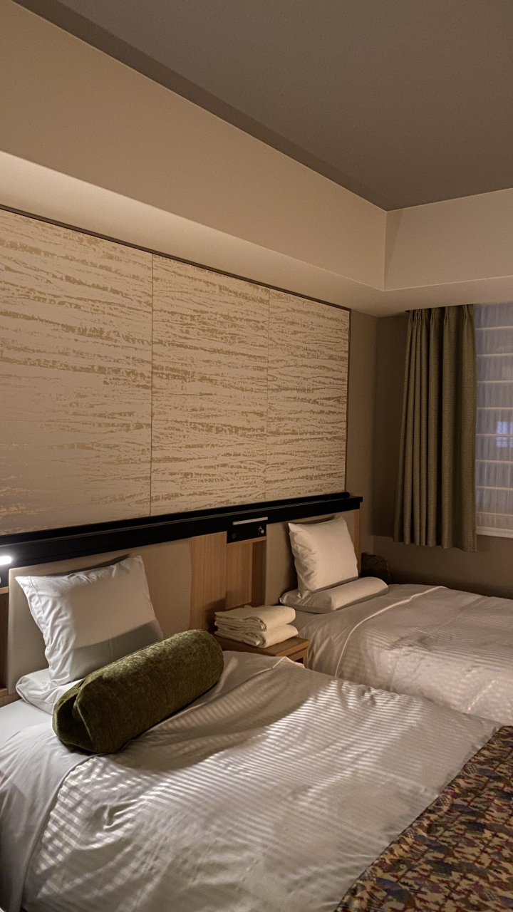 この時期の京都は結構争奪戦になりがちです。友人と3人で泊まる部屋を探していて、ここになりました。場所も四条と西洞院通を少しいくだけなので、非常に便利。錦も大丸も歩いていけます。値段が値段だけに、飾り気はない部屋でしたが、トリプルでもそれほど狭くないのに加えてバルコニーもあるのは実にいい。携帯電話のケーブルがあらかじめあるなど心配りを感じられるホテルでした。