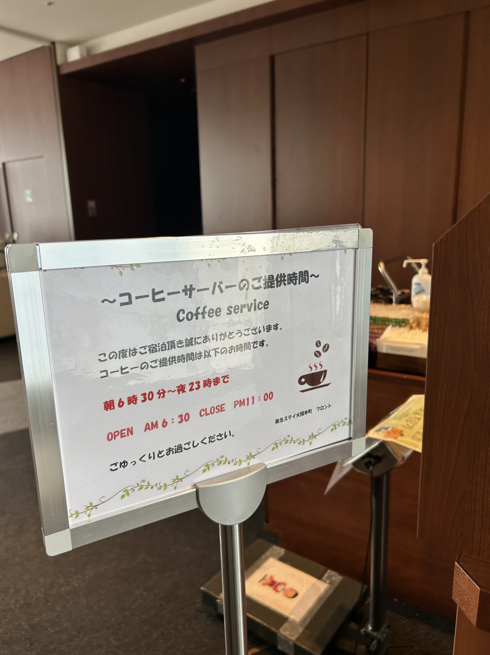 フロント横に、コーヒーやココア、お茶などが飲めるサーバーがあり無料で飲めました。