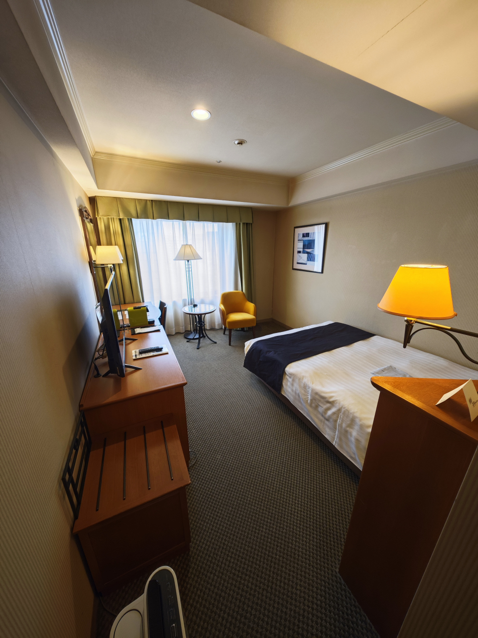 盛岡観光で宿泊しました。駅から至近距離ですね。駐車場はホテル隣接ですが北上川沿い道路からの入り方がわかりにくくやや迷いました。こちらのホテルは地元の宴会、披露宴などで利用される格式高いホテルですね。目の前は北上川で眺めもとても素晴らしい。お部屋はシングルでしたが、かなり広めでシンプル機能的で使いやすい。一人掛けのソファが便利でした。お風呂は広めで快適。駅近ですので飲食店も多数あり、夕食、飲食に不自由なしでした。川端のジンギスカンが美味しかったですね。朝食は地元名産品が多数並ぶ立派なものでした、どれも大変美味しく満足でした。フロントの方はとても雰囲気がよいホテルマンでした。滞在中は快適に過ごせました。