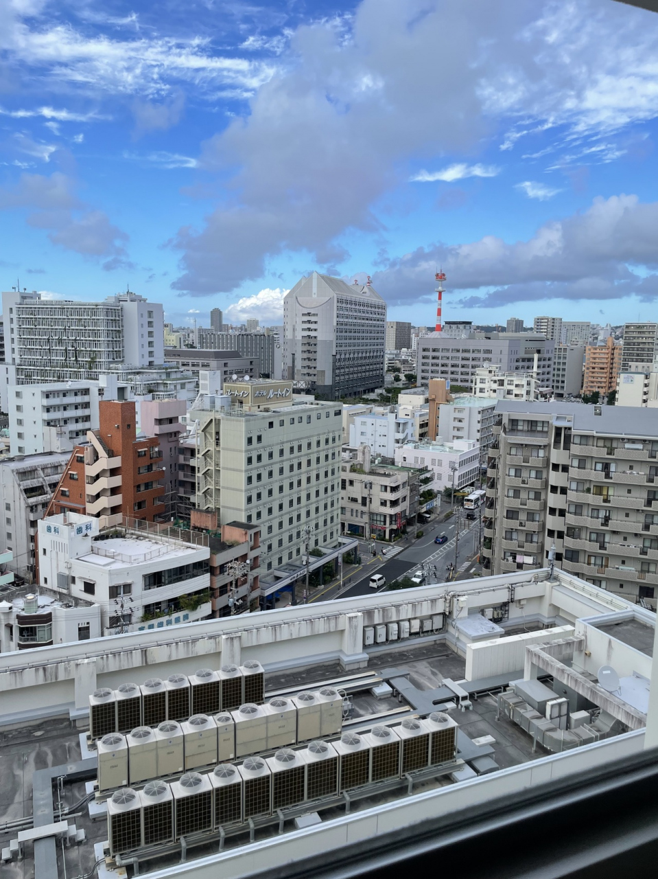 立地ですが、ゆいレール旭橋駅からデッキで繋がっています。お部屋は窓が大きく開放的です。シャワーは温度調整、水圧ともに申し分ありません。広さも充分、清潔で快適な滞在でした。朝食は沖縄そば、もずく、ゴーヤチャンプルー、サンピン茶に泡盛と沖縄食材が並びます。