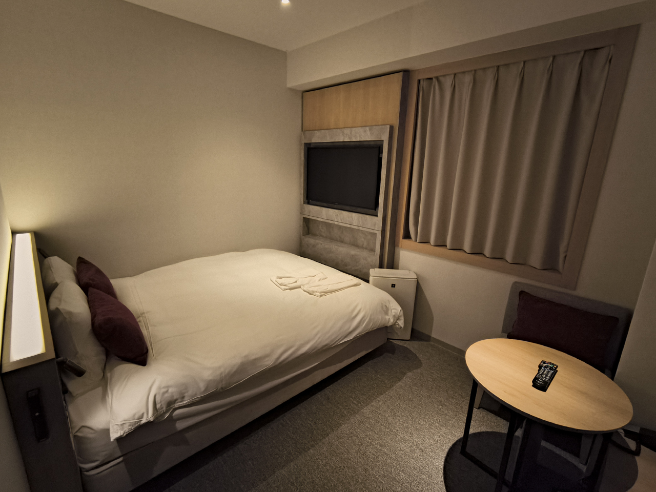 部屋は、ビジネスホテルよりは広いが、スーツケースを2個広げるのは少し厳しい。