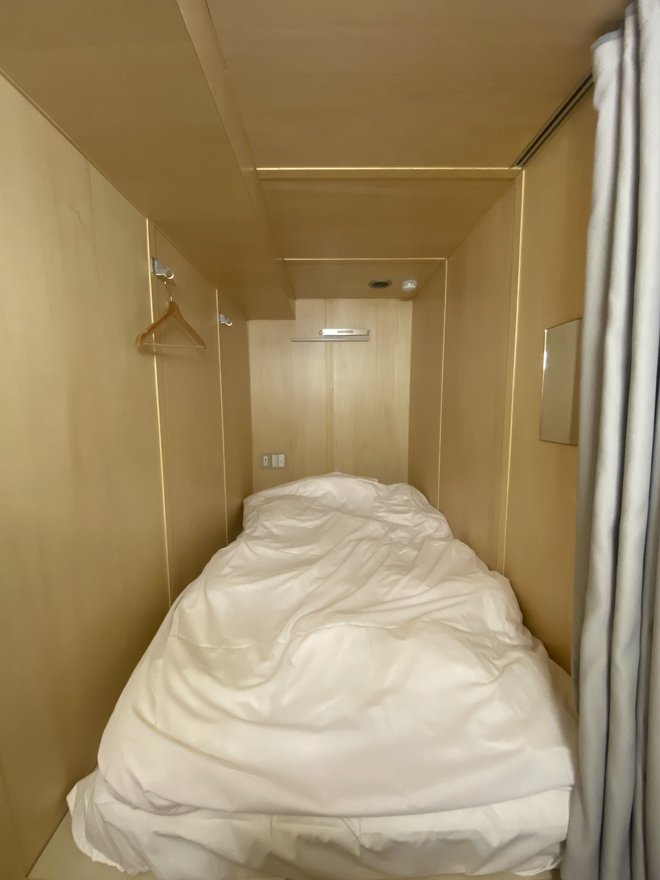 錦糸町にある人気銭湯の宿泊施設。カプセルホテル的なしつらえ。