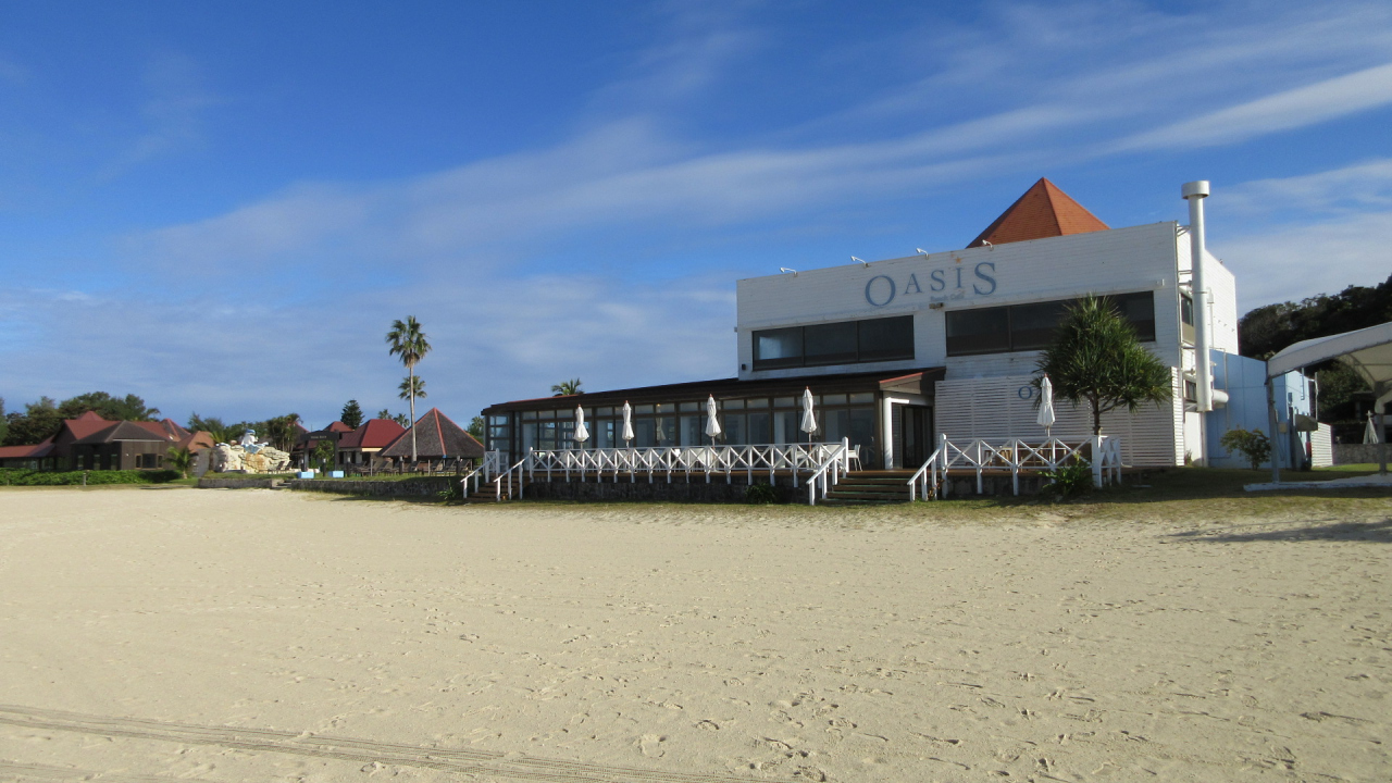 2) 「ビーチカフェ・オアシス」での朝食。テラス席もあるシーフロントのレストラン。
