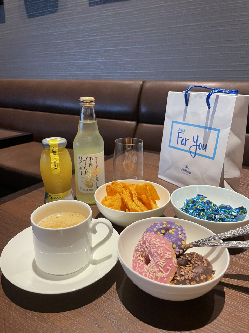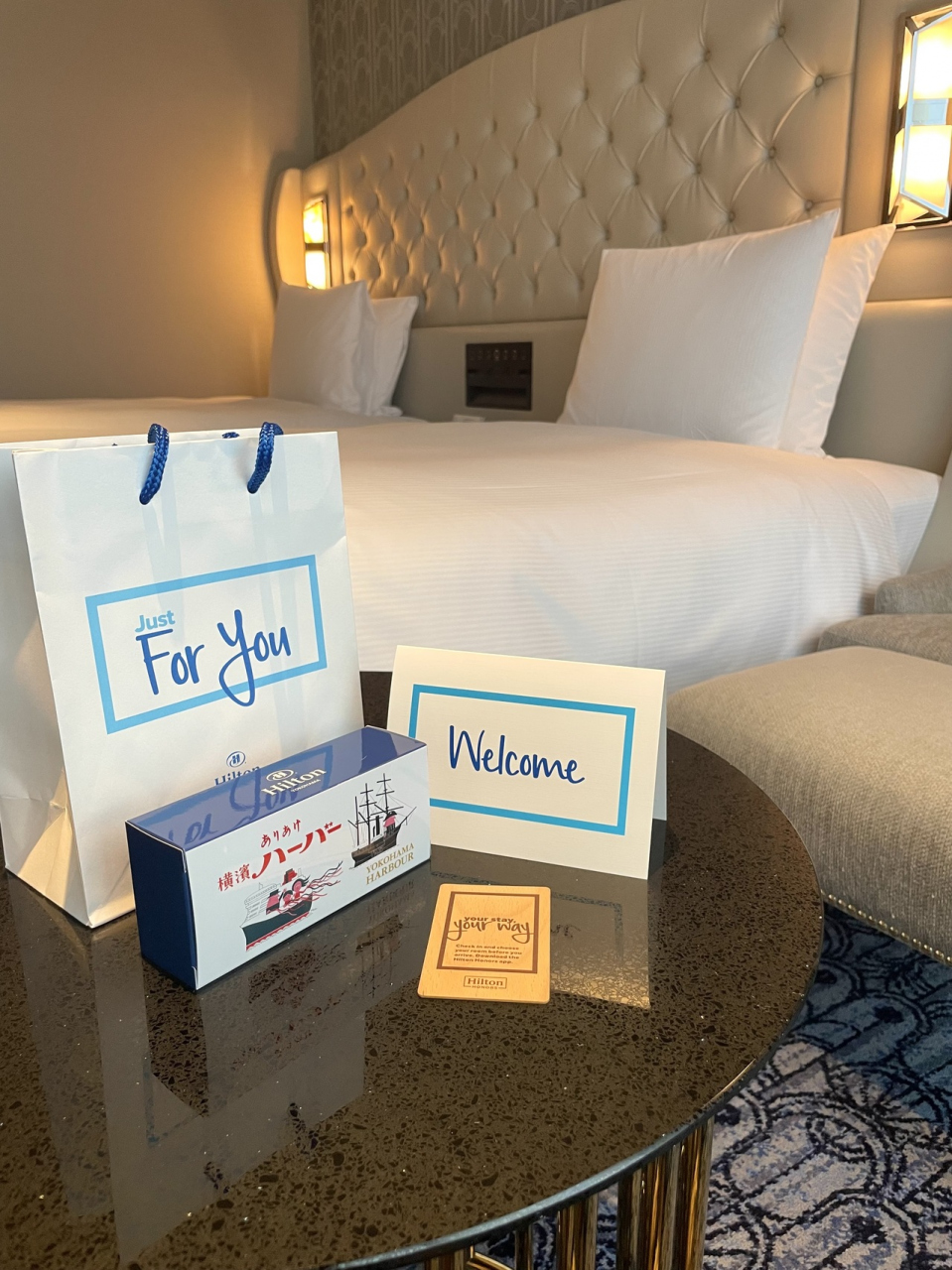 予約時のコメントにお祝いでと伝えていたので、プレゼント(オリジナルのパッケージに入った横浜銘菓のハーバー)とカードを頂き、お部屋もアップグレードしてもらえとても嬉しかったです(╹◡╹)