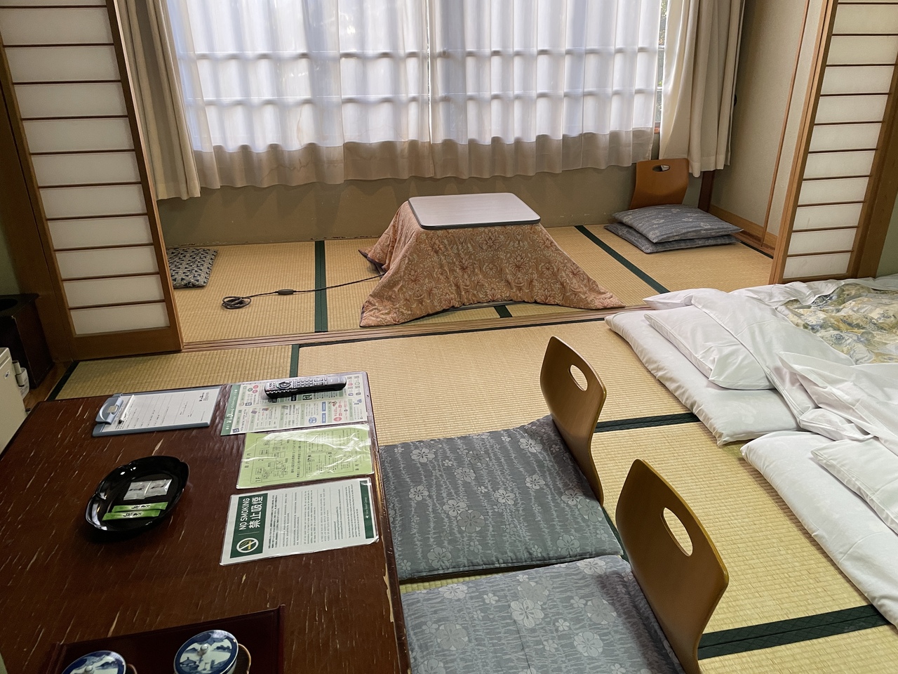 直前に予約したこともあり10畳のコンパクトなお部屋でしたが、小さめの部屋にも炬燵が付いているのが意外でした。子どもは初めての炬燵が珍しそうでした。