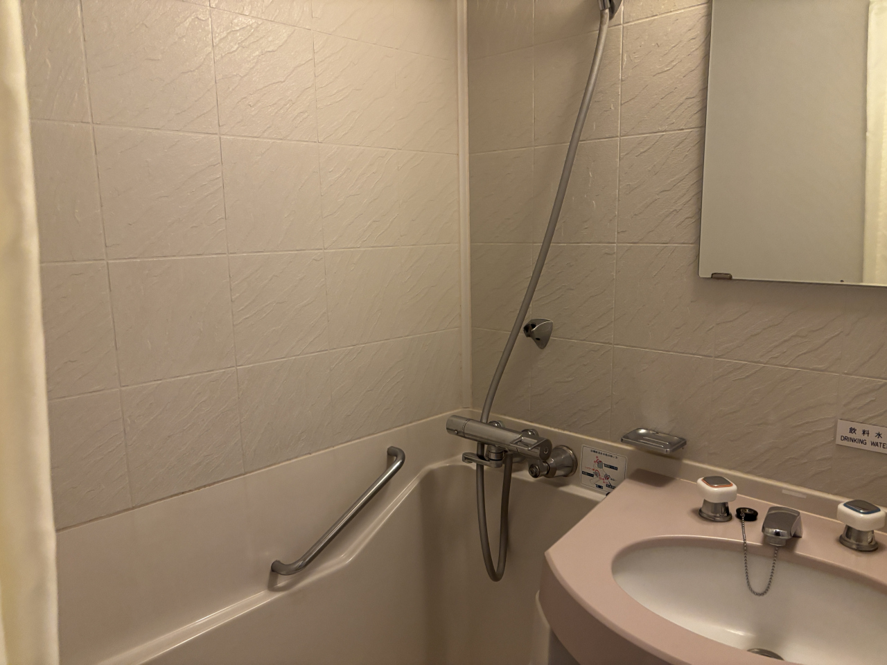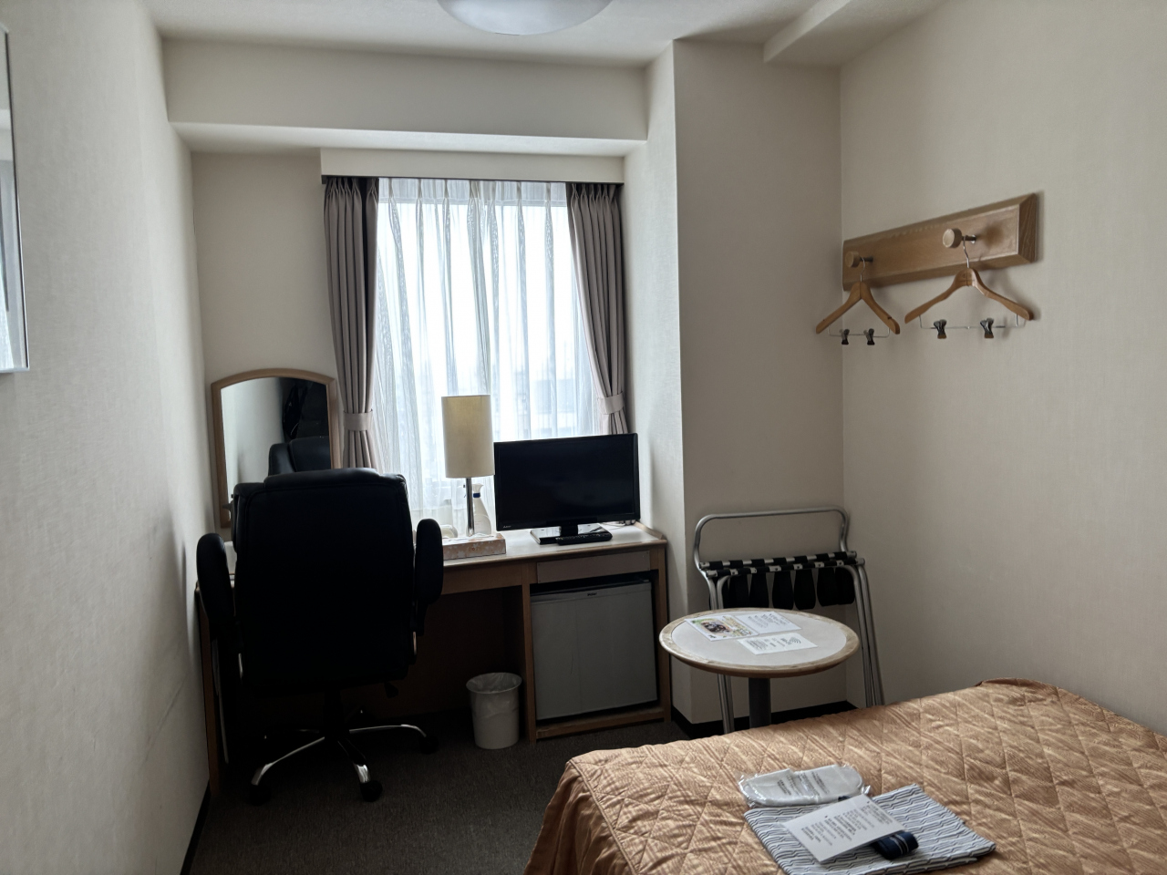 JR成田駅を出ると直ぐの場所にあり、成田空港までのシャトルバスも運行されていて、しかも激安で宿泊することができるので、以前から利用しています。ちょっと早めに到着しましたけれど、清掃スタッフに連絡をしていただいて、お部屋に入ることができて感謝です。古い建物ですけれど、キチンと清掃されていて、やや広めのスペースになっているので、大きなスーツケースを持ち込んでも大丈夫でした。冷蔵庫に無料のお水に炭酸飲料が入っています。他は普通のビジネスホテルという感じですけれど、翌日の出発が早かったので、シャトルバスで空港まで行くことができました。