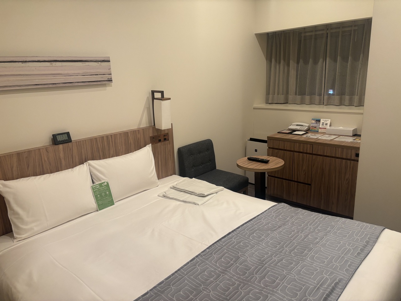 大通公園前にあり、大通駅までは徒歩10分、札幌駅までは20分くらい。部屋は綺麗で、シングルにしては広い。バスタブとトイレが別なのもよい。