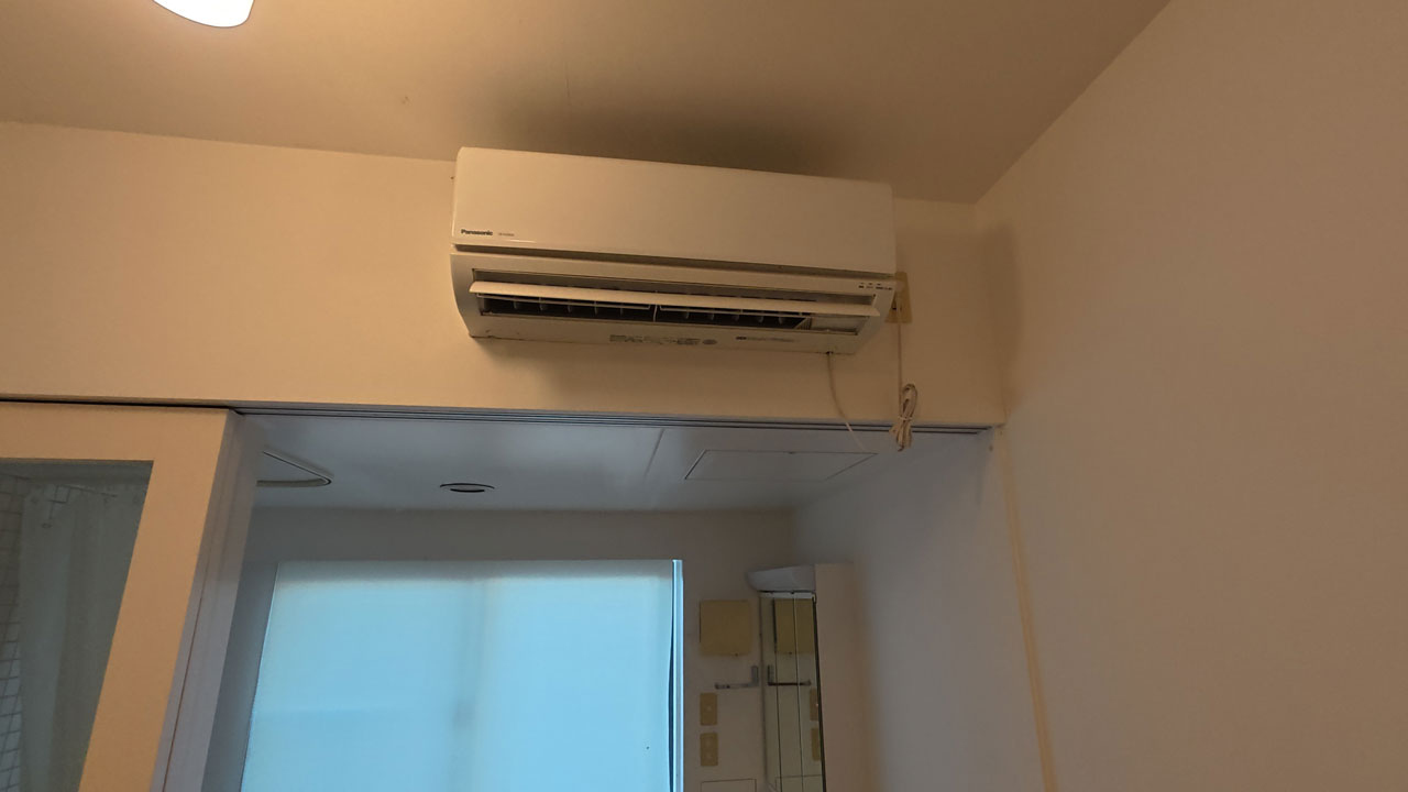 個別エアコンは良いが清掃がされていない。沖縄では4月になれば冷房を使うことも出てくるので早めに掃除した方が良い。