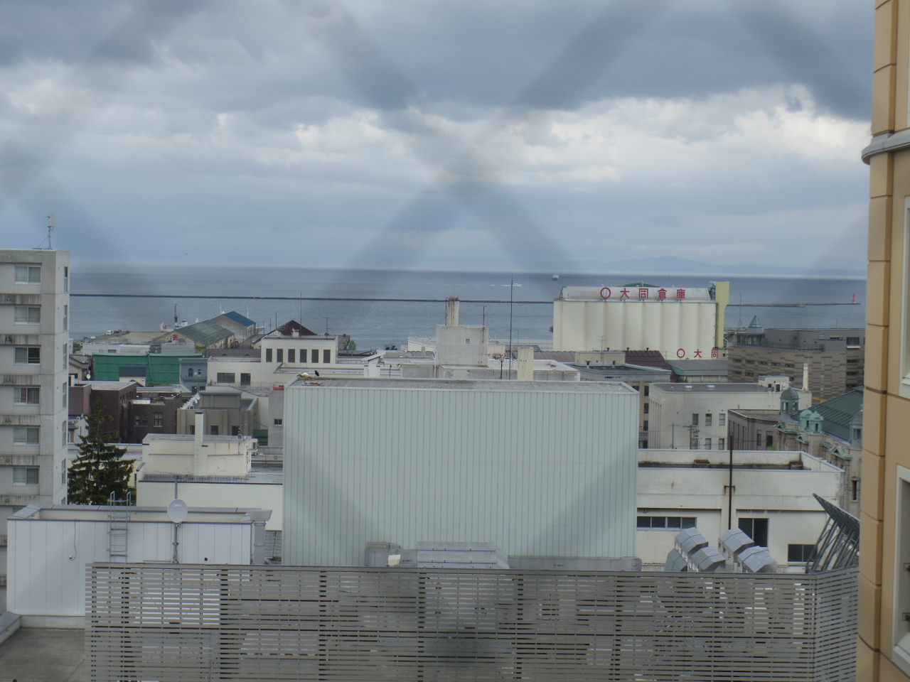 朝食は洋食ブッフェを選択すると、11階のラウンジから小樽の景色が見られます。
