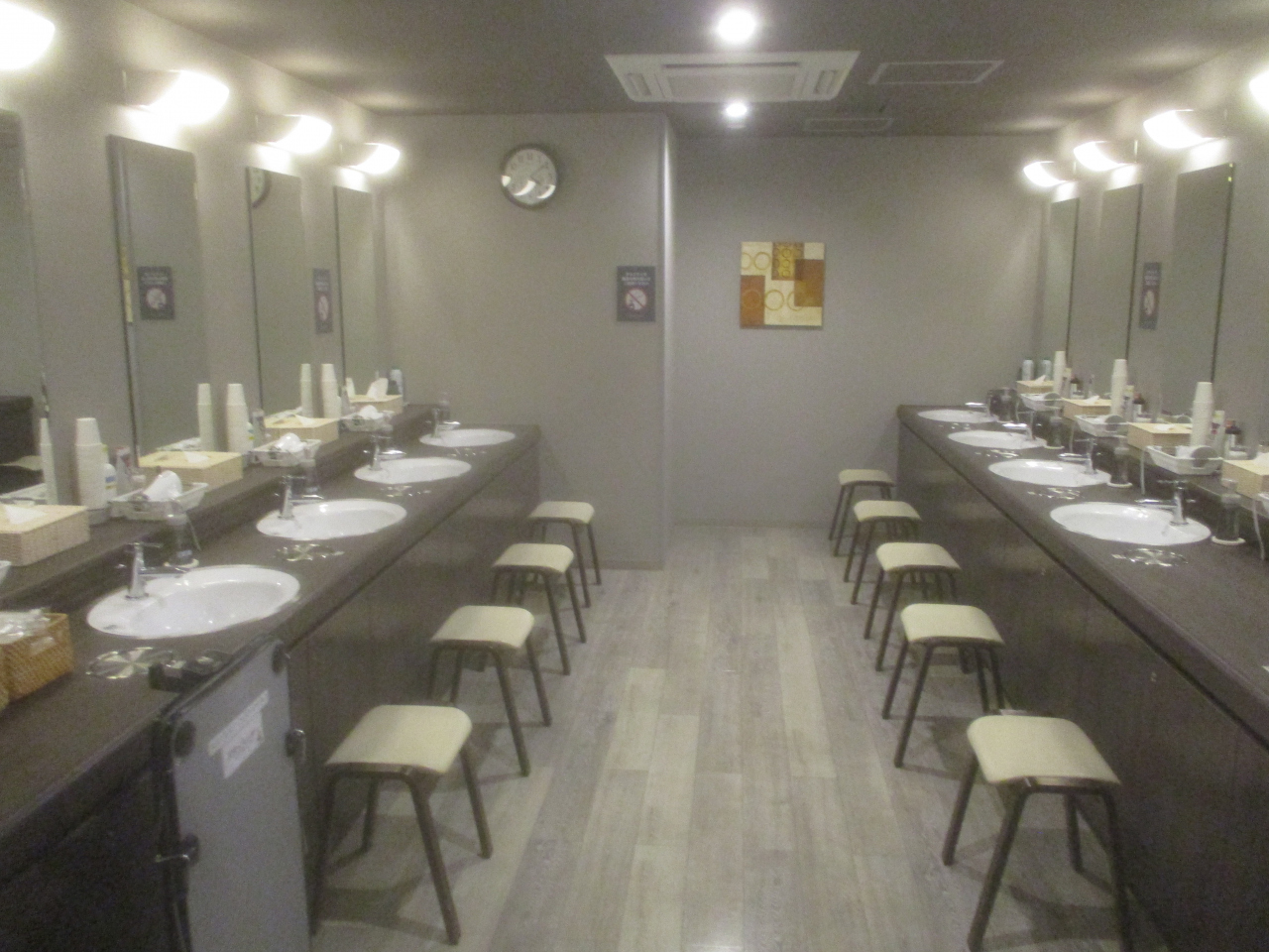 BIZCOURT CABINすすきの ルートインホテルズの奥にパウダールームがありました。こちらにはひげそり、歯ブラシだけでなく、男性用化粧品類が置かれていました。スタッフが定期的に見回りをされているようで、つねに清潔さを保っていました。