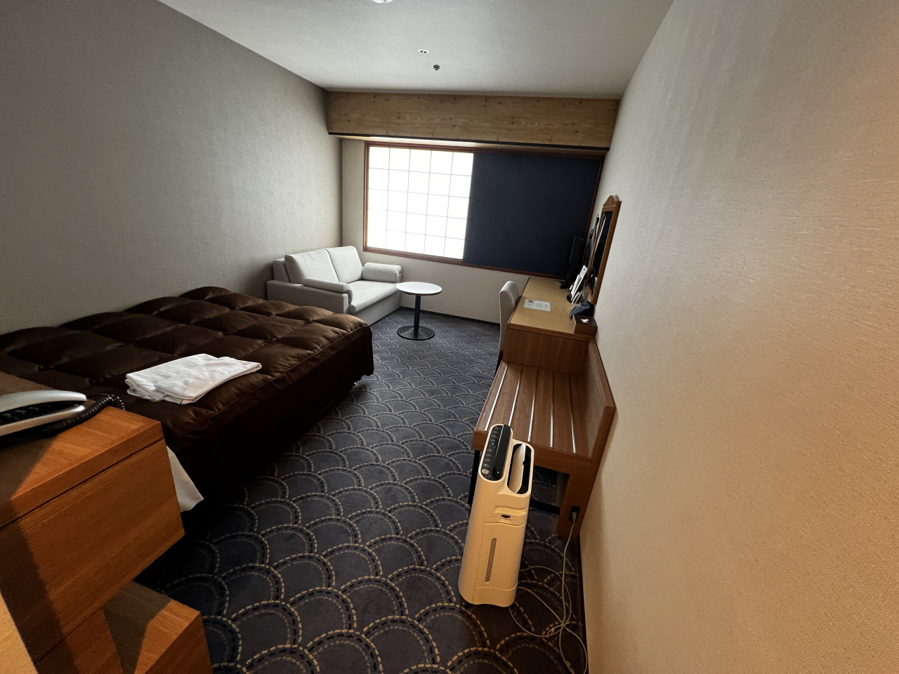 シティホテル風ですが、規模は小さいホテルです。フロントさんや設備はビジホのそれですが、お部屋は自分は気に入りました。