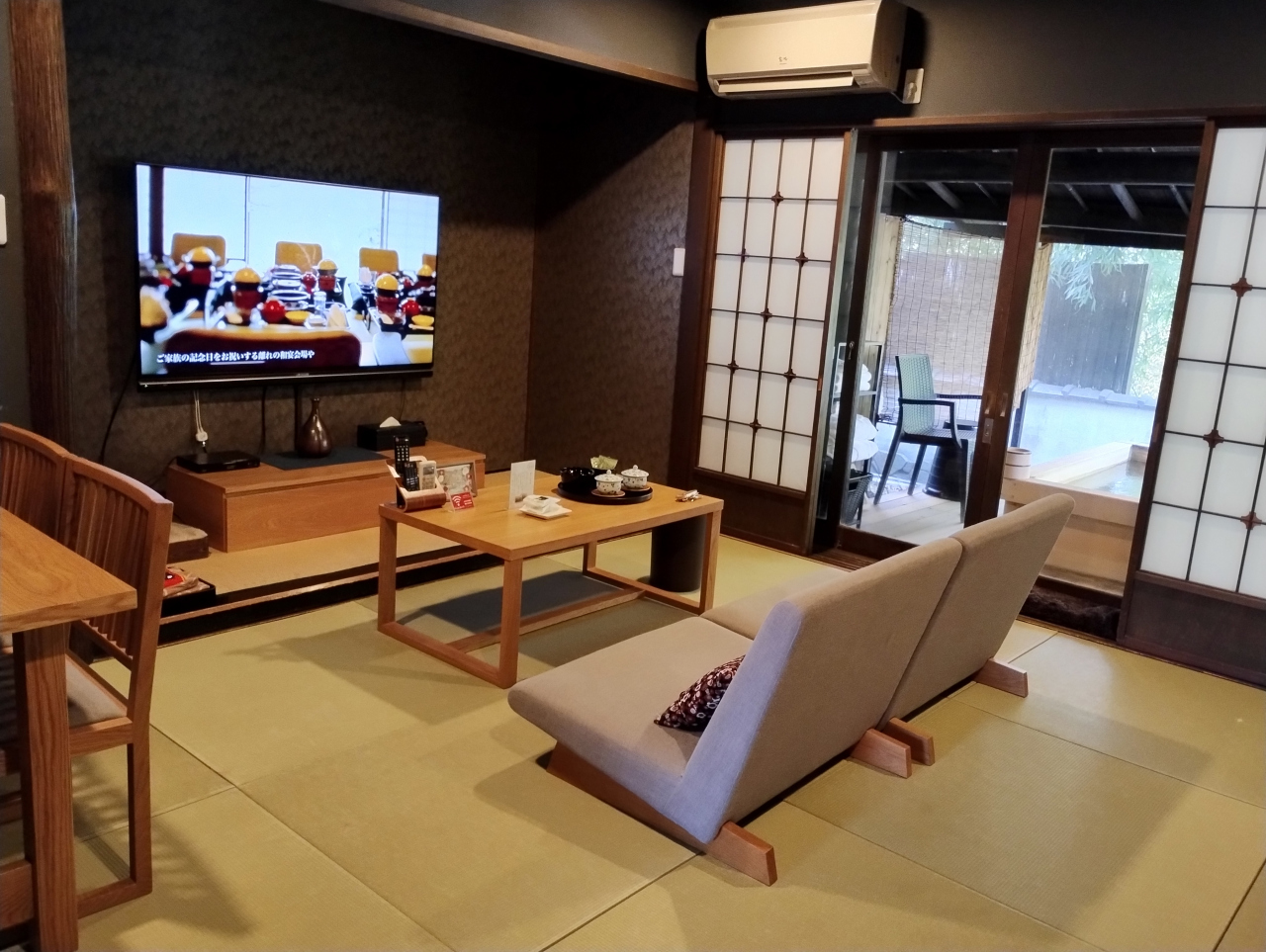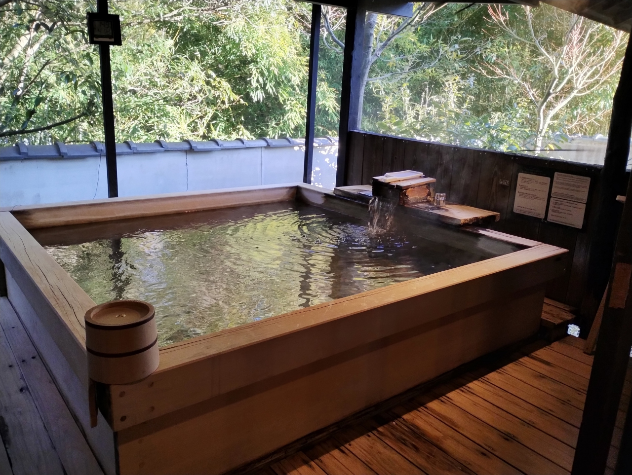 今回客室露天風呂(檜風呂)付のお部屋でしたが、部屋から見える檜風呂の見栄えの良さ。見ているだけで幸せです。